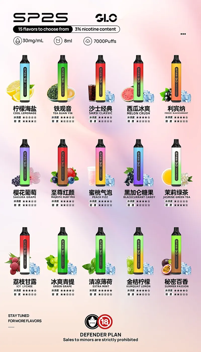 SP2S GLO拋棄式電子煙 · 思博瑞一次性電子菸7000口
